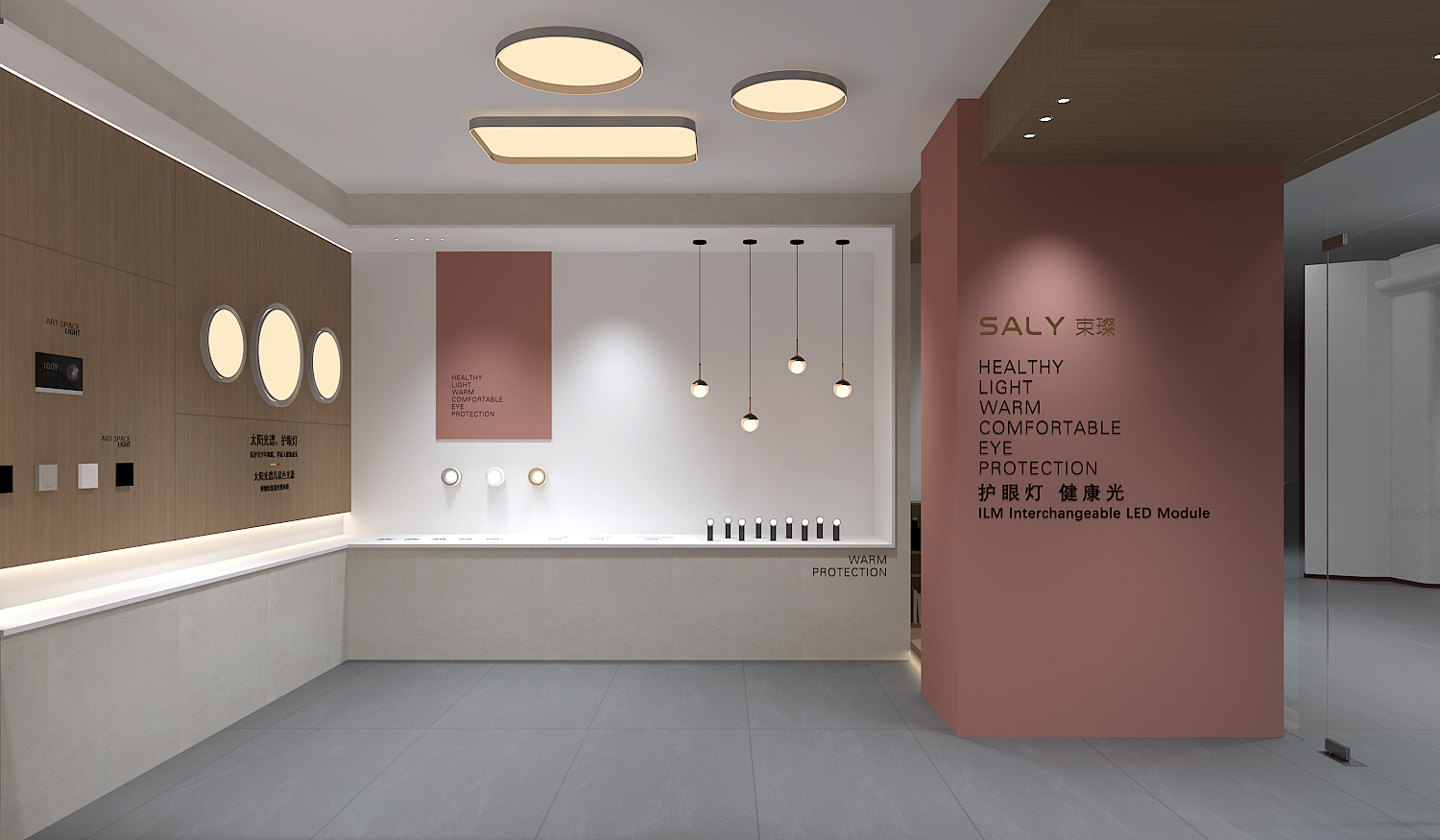 一面墙或20平方小店或店中店展示,有健康光全属产品,米家智能开关面板等,整体投入成本低;